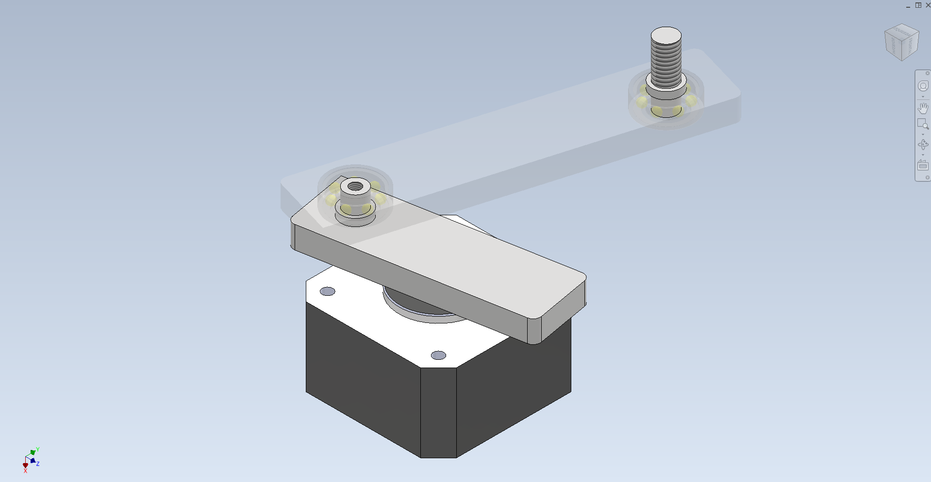 Ambos brazos están fabricados en aluminio y cuentan con rodamientos rígidos de bolas. Los ejes que unen los nodos, mecanizados en torno, se fabricaron en acero cold rolled, lo que asegura un mecanismo muy robusto y duradero.