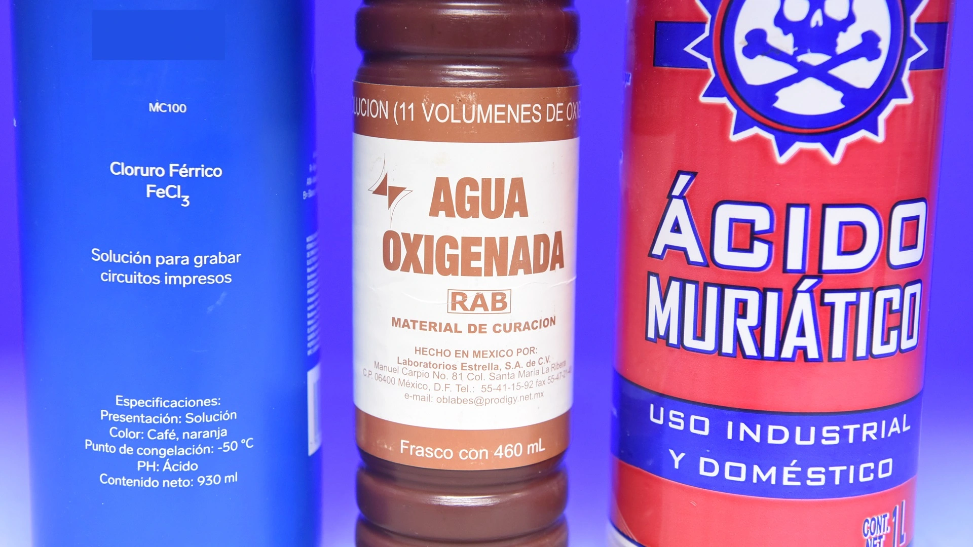 Ya lo hemos comentado en otras entradas, pero vale la pena resumirlo rápido. No es lo mismo usar cloruro férrico que ácido muriático con agua oxigenada. El ácido muriático con agua oxigenada disuelve el cobre mucho más rápido. Y cuantos más volúmenes de oxígeno tenga el agua oxigenada, más eficiente es el ataque. Resultado: menos tiempo y mejor definición en las pistas.